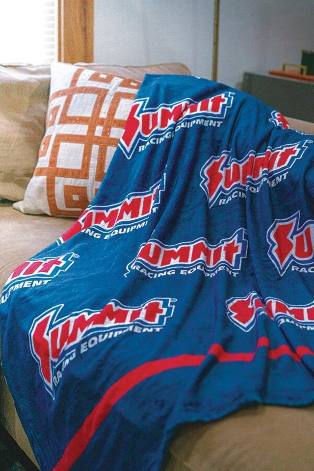 Nap better snuggled under the ultra-soft comfort of the Summit Racing Flannel Throw Blanket. Choose from solid red or gray flannel with Summit Racing and World Speed Shop® logos, or blue flannel with a Summit Racing logo pattern. The blankets measure 78.5×59 inches.